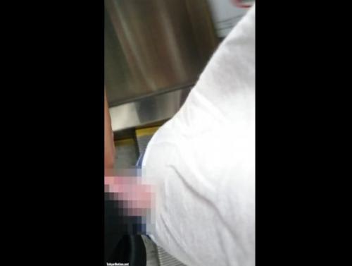 【盗撮】黒髪清純な美少女を尾行してパンティを撮影した危険人物が肉棒を露出してる!